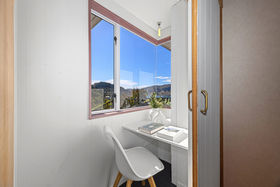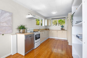 Inside, polished timber floors bring warmth and texture throughout, while expansive windows and sliding doors draw in abundant natural light. The main open plan living area extends to a generous timber deck, creating a gorgeous setting for relaxed evenings and uninterrupted appreciation of the harbour and hillside backdrop. A charming nook framed by a corner window fills your home office or study with light and inspiring views. The generous family bathroom features both a bath and an individual shower, while a separate laundry ensures the convenience and space busy life demands.